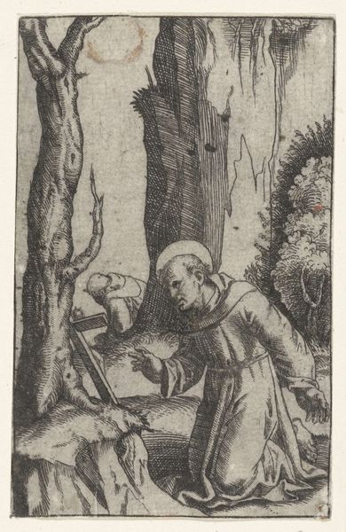 Adriaen van Ostade created this etching of a mother with two children in a doorway, sometime during his career in the 17th century. Van Ostade lived and worked during the Dutch Golden Age, a period marked by significant economic prosperity, artistic innovation, and also stark social stratification. In this small, intimate scene, we see a mother holding a child, while another stands beside her, all framed by the doorway of what seems to be a modest home. The setting gives us a glimpse into the everyday life of a working-class family in the Netherlands during this era, where the lives of women were largely confined to the domestic sphere. Despite the limited roles afforded to women, their labor and care were essential to the functioning of society. Here, Van Ostade captures a quiet moment of maternal affection, yet the rough textures and simple setting remind us of the economic realities shaping their daily existence. The children's expressions convey a sense of vulnerability, highlighting the precarious nature of life for those on the margins of society. This etching prompts us to consider the complex interplay of gender, class, and family in shaping individual experiences.