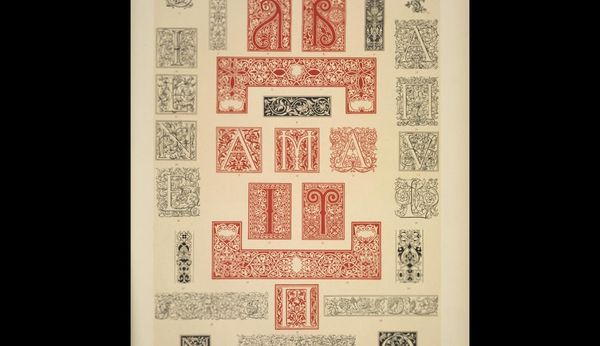 Owen Jones created this lithograph plate, titled 'Italian No. 5' for his book 'The Grammar of Ornament' sometime in the mid-19th century. The book was intended as a design resource for architects, decorators, and artists working in the Victorian period. Jones was very interested in historicism, he was an architect, and decorative artist who thought studying and copying historical ornament would help improve contemporary design. His book contains examples of ornament from around the world, arranged by country and period. This particular plate, focuses on Italian Renaissance designs. 'The Grammar of Ornament' was a product of its time. It reflects the Victorian obsession with collecting, classifying, and displaying objects from different cultures, that we can see in institutions such as the South Kensington Museum. To truly understand this image, we might want to examine how the designs in 'The Grammar of Ornament' were actually used, and also consider the cultural politics of design in 19th-century Britain.