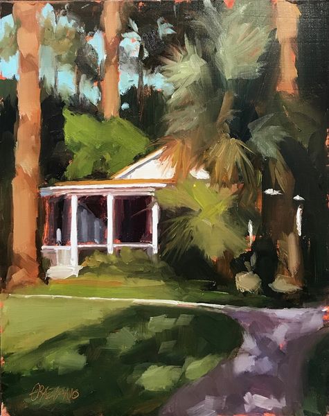 Curator: So, first impressions—what do you think when you look at this canvas? Editor: It feels…nostalgic? Almost melancholic. The colors are muted, like a faded photograph. The brushstrokes, they suggest movement but also a kind of quiet stillness. Curator: It’s oil paint on…well, that's not known. But we know it’s a piece by Dan Graziano titled "Across The Field." And what's particularly interesting, it looks to be painted 'en plein air'—outdoors. That suggests a direct response to the landscape. Editor: En plein air… That makes sense. You can almost feel the heat rising from that golden field, sense the heaviness of the air before a storm. But there's a kind of unease, a subtle anxiety I get looking at that house with its faded facade. Curator: It does evoke a certain…sense of isolation, doesn't it? The solitary structure against that backdrop. And with plein air, there's a tradition—artists engaging with and documenting the changing landscape, reflecting their connection to place and the present moment. This is an American landscape. How can you consider its relationship to manifest destiny? Editor: Right, and considering Graziano’s contemporary context—a painter working now—the work can prompt important questions about our ongoing relationship to the land, its use and possible overuse of resources, even if subtly conveyed. I wonder, what narrative does that dilapidated farmhouse embody for its communities? What stories are told—or left untold—"across the field?" Curator: Good questions, really good. And beyond that, the artist’s sensitivity—the brushwork is confident, capturing light and shadow with an almost impressionistic flair—it seems as though this painting is about atmosphere. Editor: Absolutely. It's about more than just what is depicted—it's about what is felt. I think it is how these seemingly unremarkable scenes start speaking to broader issues. Curator: I’m struck by how this image seems like a quiet observation about life, even though you brought forward bigger problems connected with exploitation of the land and abandonment. Thanks for this conversation, it has moved my spirit and intellect equally. Editor: My pleasure! It is inspiring to view art that functions both aesthetically and academically, hopefully, these insights inspire viewers to deepen their critical understanding of this artwork, even beyond our discussion today.