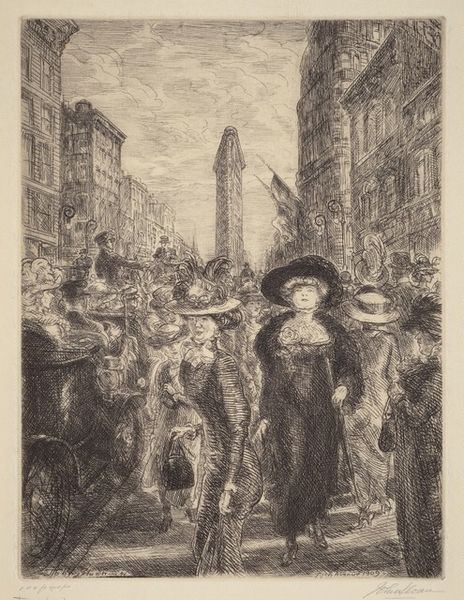 This is "Near Stanhope Gate," a drawing by Charles Dana Gibson, made with ink on paper. Gibson was known for his pen-and-ink drawings, which often depicted scenes of upper-class life. The stark contrast of the black ink on the white paper allows for precise lines and intricate details. Look closely at the woman's elaborate hat, and you can see how the artist uses line variations to create texture and volume. But, it's not just about the technical skill; it's also about the social commentary. Gibson's drawings often satirized the wealthy, and here, the woman's extravagant hat becomes a symbol of excess and privilege. Consider the labor involved in producing such a hat – the materials, the craftsmanship, the sheer amount of work – all for a fleeting fashion statement. By focusing on materials and making, we gain a deeper understanding of the cultural values and social dynamics embedded in the artwork.
