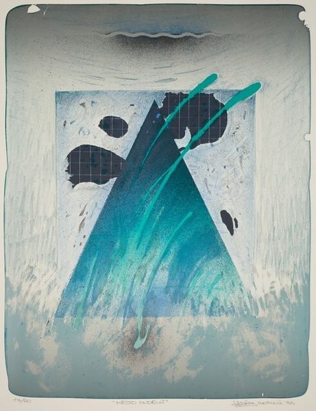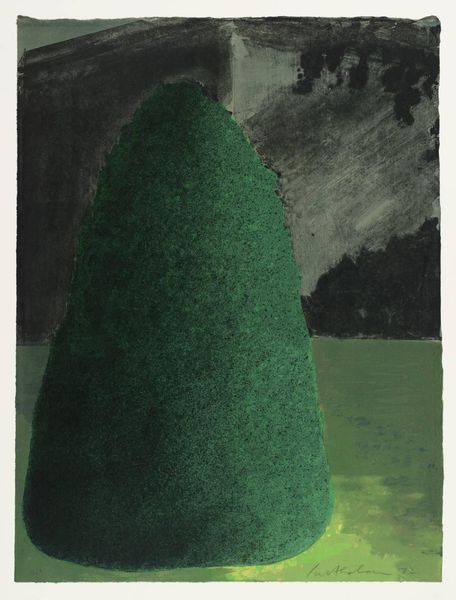 Curator: Oh, this is interesting! Looking at Wolfgang Gäfgen’s print, “La Cuillère,” from around 1976…it’s just wonderfully bizarre. Editor: Bizarre is right. The stark, flat colours hit you first. Then you register…is that a figure being spoon-fed by some looming green hand? The materiality here feels incredibly deliberate. Curator: It does, doesn’t it? It’s that naive, almost childlike simplicity, rendered with this kind of flat, almost Art Deco precision. The nude is abstracted, softened, almost…vulnerable. It feels like a dreamscape, where power dynamics are exaggerated, unsettling even. Editor: Gäfgen uses printmaking to flatten and depersonalize his figures, treating bodies and tools as forms. We are not invited into his subjectivity. And is that a soup kitchen instead of the artist studio? Where are these supplies coming from and going? Curator: Exactly! The composition almost teeters on the edge of caricature, but there's something genuinely moving there too. It’s like a dark fairy tale— the colour palette feels strangely cold. That teal against the olive green, creates a really specific tension. Editor: It's the tension of industrial reproducibility meeting handmade design! With printmaking's democratized potential for mass consumption. The question of consumption dominates, right down to the title? How can we not be made conscious about production and circulation? Curator: That’s it, it's playing with those contrasts. It draws on both the intimate gesture and an anonymous act. I'm thinking about control—who is in control here? Is the figure being nourished, or manipulated? Are they even human, or a lump of clay to be spooned? Editor: Well, given the time period, with Post-War tensions around material consumption, is Gäfgen suggesting we too are passively shaped by commodities that fill our lives? Our needs determined less by us, and more by material supply chains? Curator: Oh, that's an incredible reading! I hadn’t considered the commentary on postwar consumerism quite so directly. That spoon, then, becomes this tool of not just physical, but also societal feeding. It all just swirls together. Editor: Exactly. Gäfgen compels us to look again at how industrial labor and even our personal habits affect our autonomy. Not bad for something that presents so simply. Curator: Not bad at all. Thanks for bringing the work into sharper focus! I see it differently now. Editor: Anytime. Now, I am actually hungry.