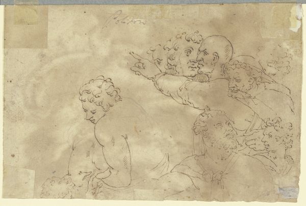 Editor: Here we have Fragonard's "Composition Study," a pen and brown ink sketch. It feels so fleeting and gestural. What can you tell me about this piece? Curator: Think about the very paper Fragonard used. Was it costly? Was it readily available? How does the speed of the sketch relate to the potential cost of materials and the time of the artist? Editor: That's a great point! I hadn't considered the economic factors influencing his process. So, the accessibility of the material could explain the rapid, almost frantic, linework? Curator: Precisely. The sketch, a preliminary exploration, reveals more than just the planned composition; it also unveils the material conditions of artistic production in 18th-century France. Editor: I guess I always thought about the finished product, not the materials that were used to create the work. Thank you. Curator: Considering the labor and materiality transforms how we value the final artwork.