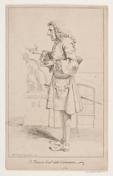 Bastiaan de Poorter rendered "Man met boek" with pen in brown ink. The artwork is dominated by the figure of a man, standing with a book in hand, articulated through meticulous lines. The composition is structured around the verticality of the figure. De Poorter meticulously uses line and shadow to model the man's form, creating a sense of depth and presence. This approach to form reflects a structuralist perspective, emphasizing the underlying order and system within the artwork. The man's attire and the book he holds, signify knowledge and status. The materiality of the brown ink on paper brings a tactile quality to the work. De Poorter's technical precision invites us to consider the philosophical implications of representation. This work embodies not just a depiction of a man, but an exploration into the nature of identity, representation, and the cultural values attached to knowledge.
