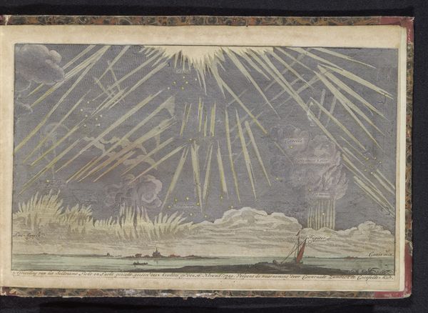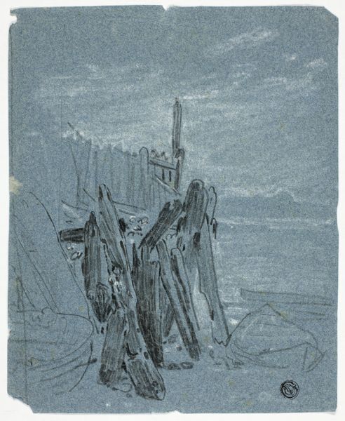 Curator: Nevinson’s "A Star Shell," held here at the Tate, depicts a scene from the First World War, though its exact date remains unconfirmed. Editor: The first thing that strikes me is that stark contrast – that brilliant, almost blinding light dominating a landscape of impenetrable darkness. It feels unsettling. Curator: Indeed. Light can symbolize hope or divine intervention, but here, it feels more like an artificial, intrusive force, revealing the harsh reality of the trenches. Editor: And look at how he's handled the materiality! It's oil on canvas, yet it's as if he's sculpted the mud and barbed wire. You can almost feel the weight of the materials. Curator: The barbed wire itself acts as a potent symbol of entrapment and the loss of freedom, doesn't it? It's visually piercing, yet offers no escape. Editor: I'm struck by how Nevinson has used this almost brutal application of paint to highlight not just the visible, but the physical experience of war. Curator: It makes you consider how the symbolism of light and dark intertwines with the sheer physical hardship. Editor: Absolutely, and analyzing the materiality adds another layer to our comprehension of the scene’s impact.