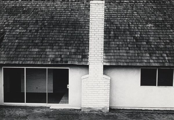 Lewis Baltz made this photograph, Tract House #6, using black and white film. Look at the way he approaches the surface; he crops everything right in, like he’s not interested in being ‘beautiful’ and is more interested in the process of seeing. The photograph has this cool, almost clinical feel, like it's examining the textures and surfaces of these buildings without getting all emotional about it. Baltz really hones in on the material aspects, like the graininess of the asphalt. It’s a study of light and shadow, but also of flatness and depth. There’s this one dark window in the top right corner that feels like a void, a total absence of light, and it really grabs my attention. It's a total mystery. Thinking about other artists, I'm reminded of Ed Ruscha who also looked at architecture in an objective way. Baltz's work, like Ruscha's, resists easy answers. It’s a reminder that art can be about asking questions, not just answering them.