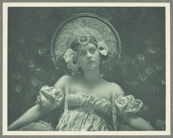 Curator: Here we have a gelatin silver print dating from the late 19th century, titled "Photographic Reproduction of the Painting Contemplation by Guido Reni." It's part of the Rijksmuseum collection, an anonymous photograph documenting an iconic painting. Editor: The woman's upward gaze and the soft focus give it such a yearning feeling. The whole piece whispers of some romantic Pre-Raphaelite ideal, full of feminine sorrow and pining. Curator: Indeed, the photograph captures the original painting’s composition with great attention to the female figure's positioning within the frame, with the draping of fabric that hints at both vulnerability and grace. This interplay between light and shadow articulates the delicate contours of her face and neckline. Editor: But what does it mean, this re-presentation? An anonymous photographer capturing a painter's depiction of an idealized woman contemplating... what exactly? Is this mass reproduction making art more accessible or is it furthering a system that continues to reduce women to objects of artistic and intellectual desire? Curator: Well, this photograph embodies the evolving technological capabilities of its time, reflecting the desire to reproduce and disseminate art beyond the confines of elite spaces. It is a semiotic marker referencing both the painting it seeks to record and the mechanical eye that records it. Editor: Right, but it is also feeding into a system, particularly relevant during the height of colonialism, that fetishized European beauty ideals, positioning them in direct contrast with subjugated populations. Look how her gaze leads to nowhere and everything – an unfettered power linked to idealized, untouched beauty. Curator: Perhaps. However, from a formal standpoint, this print embodies a careful orchestration of tones, and the subtle gradation from light to dark creates a nuanced aesthetic experience. It's a captivating blend of form and light. Editor: It invites complex contemplation; it presents a very narrow depiction of idealized beauty in a mass-produced package. I hope viewers challenge that singular vision and unpack what power lies in who controls visual narratives. Curator: Precisely. It reveals an historical record that bears both beautiful construction and inherent visual biases for our critical engagement.