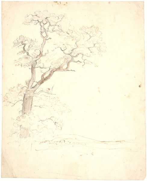 Curator: Standing before us is "Tree," a graphite and colored pencil drawing on paper, created around 1877 by Hendrik Pieter Koekkoek. It's a delicate landscape study, currently residing here at the Art Institute of Chicago. Editor: Hmm, first impression? It’s hauntingly beautiful, like a half-remembered dream of a summer day. There’s something ephemeral about the sketchiness of the lines. Curator: Indeed. Koekkoek captures not just the tree's physical form, but its essence, its living presence. I see echoes of Dutch landscape painting—a careful observation of nature blended with an atmospheric quality. Editor: Trees, of course, are loaded symbols. Throughout art history, they represent everything from family trees, literally ancestry and rootedness, to the Tree of Life. It reminds me of Yggdrasil in Norse myth—a connector between realms. Does this particular tree evoke a specific feeling of connection for you? Curator: It’s a reaching-upwards, an aspiration. See how the lines are delicate but firm? They really highlight the yearning of the tree's branches towards the light. Koekkoek’s restraint is brilliant. He avoids overwrought details. Editor: And that selective detail draws your eye. You’re invited to fill in the blanks. Maybe that’s why it feels so personal. I’m also curious about his choice of materials. The combined effect of graphite and colored pencil creates this textured, almost misty quality. What do you think he was aiming for? Curator: A kind of fidelity. Perhaps a commitment to render nature honestly, without idealization. Even in its sketchy state, you can feel the grain of the bark, the delicate sway of the leaves. I can almost smell the damp earth. It's sensory. Editor: It’s intriguing how something so seemingly simple can be so evocative. A single tree, drawn with a light touch, becomes a mirror reflecting our own relationship with nature. Curator: I agree. The drawing becomes less about the tree itself, and more about what the tree makes us feel. A shared human experience. Editor: Well, I certainly feel grounded after that contemplation.