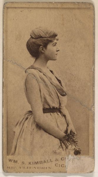 This is Card Number 7, Miss Zeffie Tilbury, from the Actors and Actresses series, issued by Duke Sons & Co. to promote Duke Cigarettes. Miss Tilbury’s pose, seated and gazing off to the side, evokes the classical contrapposto, an ancient artistic convention used to depict figures in a naturalistic yet graceful manner. We see this stance echoed through the ages, from Hellenistic sculptures to Renaissance paintings. Even here, in this humble cigarette card, the echo of antiquity resonates, albeit subtly. The column beside her, though merely a prop, suggests a connection to the grand architecture of the past. It reminds us of the enduring appeal of classical forms and their ability to lend an air of dignity and timelessness to any subject, even the advertisement of tobacco. Thus, we see how cultural memory works. The forms and symbols of the past, like the contrapposto and the classical column, resurface and are reinterpreted across time, revealing the non-linear and cyclical progression of symbols and their ever-evolving meanings.