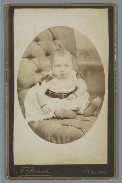 Simon van Caspel made this portrait of an unknown child with a small basket, likely in Amsterdam during the 1870s, using the albumen print process. The image's cultural context lies in the rise of commercial photography and its impact on portraiture. Before this time, portraits were generally afforded to wealthy elites, but as photography became more accessible and affordable, the middle class increasingly took advantage of the opportunity to document their likenesses. Here, the child's crisp white dress and the formal studio setting, suggest a family eager to participate in new social practices. A simple prop, the basket, perhaps indicates a middle-class fascination with the trappings of wealth. Examining sources like period advertisements, social histories of Dutch families, and institutional records of photographic studios helps us see how the democratization of image-making altered social relations and redefined public representation. Studying this artwork provides insights into the cultural shifts of the time.