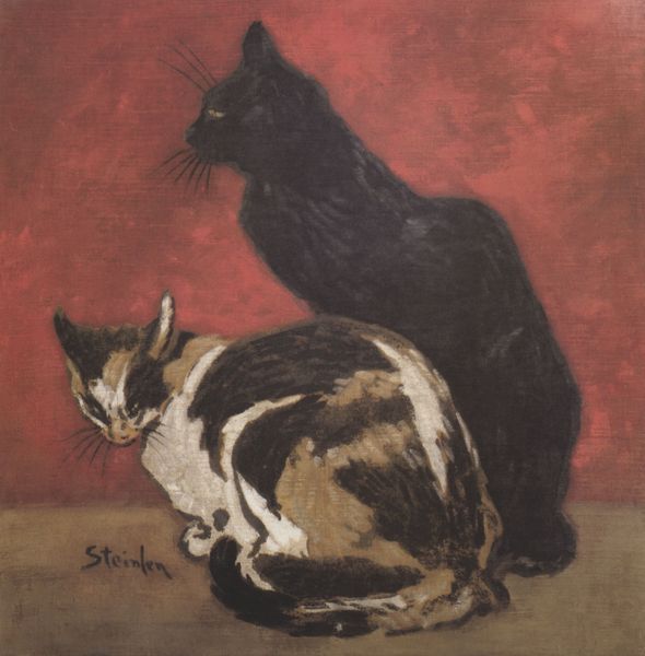 Editor: Right, next up is “Sleepy Kittens,” painted around 1900 by Henriëtte Ronner-Knip, using oils. It's immediately so endearing – they’re just a tangle of fur and sleepy faces. I am curious to hear, what captures your attention most in this piece? Curator: Endearing is spot on. For me, it's how Ronner-Knip elevates the domestic. She takes what could be a sentimental cliché – kittens – and turns it into a sophisticated study of light and form. Notice how the loose brushstrokes suggest fur rather than define every strand. The kittens aren't just cute; they're impressionistic dabs of color brought to life with a keen understanding of anatomy. What do you make of that slightly muted palette? Editor: I hadn't considered the color choices specifically. I guess I assumed she’d want something brighter, more conventionally cute. Curator: Exactly! The subdued tones contribute to the intimacy. And think about it – painting animal portraits, especially cats, was her bread and butter. Yet, there's an almost defiant artistic choice here, as if she’s saying, "Yes, it's kittens, but look closer. See the artistry." Do you think she succeeded in that defiance? Editor: I do. I think what I will take away is her ability to use these common animals in this not-so-common way. It’s not just about painting cute kittens but celebrating ordinary moments through skillful painting. Curator: Precisely! And that’s where the true charm lies – it’s accessible but quietly profound. And you know what? Every time I look at this, I want to adopt a cat and paint it. Editor: You and me both! Thanks so much. I will keep my eyes peeled from now on!