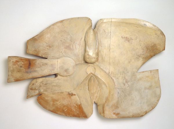 Richard Deacon made this sculpture, "Art For Other People #12," out of marble and leather. The creamy, cool marble curves in on itself, framing a row of tactile indents, and resting, incongruously, on soft leather petals. There's such a great sense of touch in this piece, which you get when you put together hard and soft materials. The smooth, weighty feel of the marble contrasts with the yielding pliability of the leather. It's a bit like a dance, where each element is both distinct and relational, setting off and accentuating the other. Look closely, and you'll notice the way the leather is stitched together. These lines, not quite perfect, show the hand of the artist. I think of Eva Hesse, and her exploration of form and material. Like her, Deacon invites us to appreciate the messy, human, and imperfect qualities in art. There’s no one way to experience this piece, and that’s what makes it so compelling.