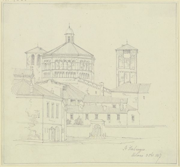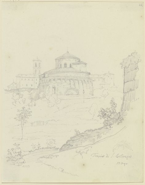 Editor: We’re looking at "S. Maria del Fiore in Florenz," a cityscape drawing from 1828 by Friedrich Maximilian Hessemer, housed in the Städel Museum. It’s a delicate sketch, mostly pencil on paper. The Duomo looks almost like a dream, shimmering there. What jumps out at you? Curator: That's a perfect description: shimmering and dreamlike! It's not just a representation of the Duomo, is it? It feels like a whisper of a memory, captured in line and shadow. Hessemer wasn't just documenting; he was feeling Florence, letting its spirit flow through his hand onto the page. The very light touch suggests he was using it to refine ideas, or simply to meditate. Does it put you in mind of a similar space, real or imagined? Editor: I see what you mean. It's interesting that it's in the Städel Museum. The landscape isn't traditionally German. I’m curious as to why Hessemer was even in Florence. Curator: Well, remember the Romantics were all about the lure of the south! Italy was a pilgrimage, and Florence, with its explosion of the Renaissance, was like Mecca for an architect. The city provided both ancient foundations and living testaments of architectural form, serving as the most exciting laboratory for creative synthesis. Do you think that tension comes through at all, the past whispering to the future? Editor: I do, particularly when viewing it knowing the purpose was experimentation and refinement! The way he uses pencil gives it an unfinished yet resolved appearance. Curator: Exactly! That tension, the "unfinished yet resolved," you put it perfectly. It's an echo of Florence then and now. And a little bit of Hessemer himself. Thanks, I learned something today! Editor: Me too. Seeing the city through Hessemer's eyes definitely makes me want to book a ticket to Italy!