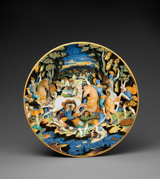The Urbino Potteries created this plate with Horatio at the Bridge; its date of production is unknown. Here we see a chaotic scene rendered in a style that evokes classical antiquity, yet it speaks volumes about the cultural values of the Renaissance. At the forefront is Horatio, the Roman hero, bravely defending the bridge against the invading Etruscan army. Painted in Renaissance Italy, a society steeped in humanist ideals, the plate embodies themes of courage and self-sacrifice. Yet it is also marked by the era’s complex relationship with power and identity. We see the glorification of male heroism but at the expense of a diverse representation. The narrative, while inspiring, reinforces the societal hierarchies of the time. Consider how the image’s classical subject matter, celebrated during the Renaissance, carries implications about cultural power and the construction of historical narratives. The plate invites us to reflect on the ways in which stories of valor and sacrifice can both inspire and perpetuate specific cultural values.