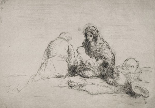 Editor: Here we have Louisa Anne, Marchioness of Waterford's watercolor, "Christ Raising the Dead". The rough texture and muted tones give it a sense of immediacy, like a scene witnessed firsthand. What strikes you about the materiality and artistic process? Curator: Considering Waterford's social standing, how does her choice of watercolor, traditionally seen as less prestigious than oil, influence our understanding of her artistic intent and the artwork's accessibility to a wider audience? The scale is small, but the story has huge social impact. Does the medium amplify or diminish that? Editor: That’s a good point; perhaps using watercolor democratizes the message and aligns it with accessibility and humbleness? I hadn’t considered the class implications. Curator: Precisely. By examining the materials and their historical context, we gain a richer understanding of both the artist's choices and the artwork's potential impact.