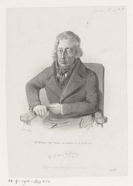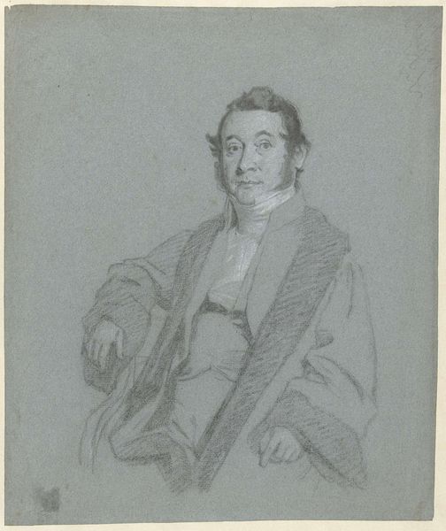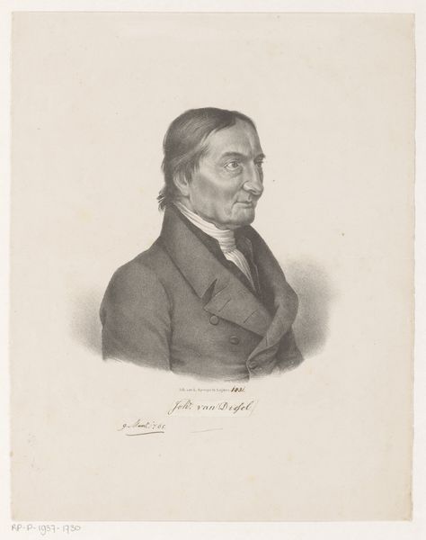 Curator: It strikes me as quite serious; almost melancholic, with those stark lines creating deep shadows. Editor: Indeed. This is an etching titled "Mandsportræt," or "Portrait of a Man," by Vilhelm Kyhn, created in 1858. It's currently housed at the SMK, the National Gallery of Denmark. Curator: Etching...that explains the precision. The face is so carefully delineated, as if revealing character through each precise mark. It recalls similar period portraits. I can almost hear the weight of societal expectations pressing on him. Editor: Observe the formal construction. The artist employed meticulous cross-hatching to sculpt the planes of the face, conveying both form and emotional depth. The subject's gaze is direct and unwavering, holding the viewer's attention. Note too how Kyhn uses a tight, controlled oval composition to constrain the form and intensify the focus. Curator: The cravat and high collar are symbols of the era's strict social codes. His clothes serve to conceal individuality, projecting an air of conformity while his piercing stare seeks individual recognition. This conflict is powerful, revealing so much about 19th-century masculine identity. Editor: The choice of medium adds to this tension, wouldn't you say? An etching has a certain austerity, a lack of overt drama. The shades of grey emphasize structure over surface ornamentation. There's something subtly radical here – an attention to psychological depth expressed through minimalist formal means. Curator: I see the interplay of constraint and assertion played out on his face; societal forces pushing inward countered by the subject's will. The shadows hint at something simmering beneath the surface. The symbol of a new age seeking individual identity within societal rules is very prevalent. Editor: An interesting interplay of personal expression and societal pressure – visualized masterfully using a range of art theories, with minimalist tones and well framed subject, a powerful print. Curator: This quiet portrait resonates with lingering emotional truths for me. Thank you. Editor: An intriguing examination that highlights what art theory does to help reveal new layers in portraits like these!
