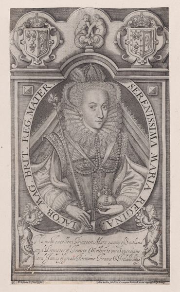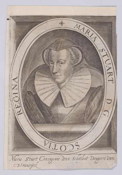 Editor: Here we have a print from 1650, "Mary, Queen of Scots," part of Famiano Strada's "De Bello Belgico." The crisp lines and formality give it such a regal feel, even with the slight awkwardness of the perspective. As someone just beginning to understand art, how should I look at this piece and better understand what was happening? Curator: Considering the era and its role within a historical text, this image served a clear propaganda function. "De Bello Belgico" details the Dutch Revolt. How do you think the inclusion of Mary, Queen of Scots, a figure executed decades prior, served Strada's broader political and religious narrative? Editor: So, it's not necessarily about *her*, but about what she represents to the intended audience? Perhaps aligning the Dutch cause with a historically controversial figure who was seen as a martyr by some? Curator: Exactly. Consider how her portrayal, even idealized, tapped into existing sentiments regarding monarchy, religious conflict, and foreign interference. Who controlled the means of production for prints like these? How did that affect what got distributed and what was seen? Editor: Okay, so it makes me think about who commissioned this. Clearly someone with a strong opinion, maybe the Catholic Church itself, given the author. I'd guess prints at the time were much more important as a tool of soft power and less a representation of some "pure" artistic impulse. Curator: Precisely! We have to consider that this portrait participated in the early modern “image wars.” Now, look closer; do you notice anything about the details of her garments or adornments, details that may allude to these specific conflicts? Editor: Looking closely, the modesty of her clothing and stark, almost severe, headdress suggests a sense of pious restraint. Maybe this simplicity, this austere style, was to paint her as virtuous or as a figure who opposed the Protestant Reformation. Curator: A good observation! In the public memory of her time, images played a crucial part in establishing views of powerful political and religious leaders, especially controversial ones. It also highlights how strategic deployment of portraits reinforced political messages during times of immense conflict. Editor: Wow, I never thought of art history as image wars. I am seeing the artist not just as making aesthetic choices but political ones too! Thanks!