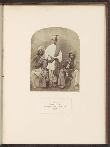 Henry Charles Baskerville Tanner made this photographic portrait of three Afghan horse dealers. Photography, unlike painting or sculpture, relies on a chemical process, capturing light and shadow on a treated surface. The sepia tones give the image a timeless quality, yet the details captured—the texture of the men's garments, the folds in their turbans—speak volumes about their social and economic context. The photograph is more than just a record; it's a cultural artifact, reflecting the era's fascination with documenting different cultures. The very act of taking the photograph involves a complex interplay of labor, from the photographer to those who developed and printed the image. The three men were likely photographed in British India, suggesting the movements of people across vast landscapes, and their negotiations of trade. Ultimately, this portrait invites us to consider how materials and processes intersect with broader social issues, blurring the lines between art, documentation, and cultural exchange.