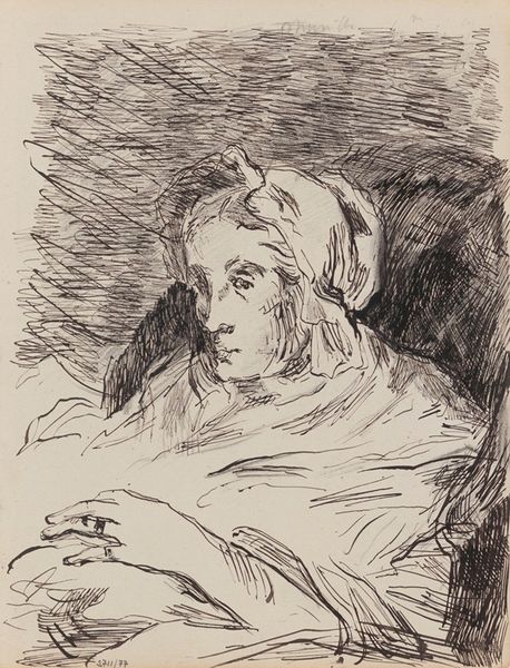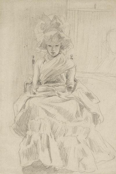 Curator: A melancholic air seems to surround "Portrait of a Lady," this subtle pencil drawing by Francesco Didioni. Editor: There’s a real sense of introspection, isn't there? I am immediately drawn to her eyes—a little shadowed, a little heavy. They seem to carry a weight of untold stories. Curator: Precisely. Note how Didioni uses the pencil, it is almost like breath. We are not entirely certain when it was crafted, but its delicate lines and the almost ephemeral quality suggest an intimate moment. The drawing balances detailed observation with what seems like emotional capture. Editor: Absolutely. Look at the structure too! How he utilizes layering to build form, to give weight to her drapery but the sketch lines almost feel unresolved in places. This emphasizes both the physical presence and a feeling of, well, inaccessibility or something not completely "there" yet, it almost evokes Barthes’ idea of the punctum, a silent wound, in the representation. Curator: I resonate with that. Given its likely origins, this probably would have been part of an aristocratic household and never really meant for wide consumption, or the unforgiving criticism from professional circles at the time, just existing in some private rooms with like-minded sensitive persons. Editor: And the artist captured her at rest. The composition, almost asymmetrical, invites us to participate, perhaps as confidants? Even in such minimal detail, one can infer social status through posture and clothing and perhaps something more interesting with an implicit story of humanity. It really goes beyond surface-level representation into something far more profound. Curator: Indeed, it's like a whispered confidence captured in graphite. A ghost of a feeling brought to life on paper. What a piece. Editor: A really beautifully wrought melancholic daydream frozen in pencil dust and held for ever in a moment!
