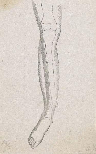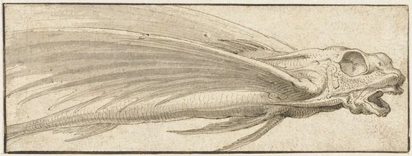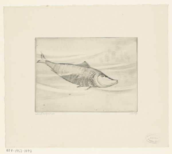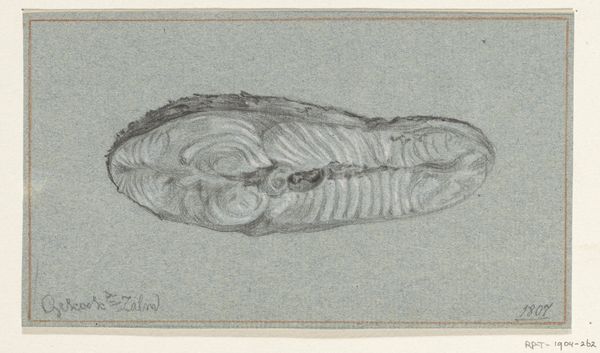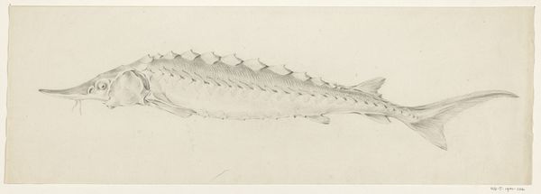 Curator: Here we have "Vis," a pencil drawing completed in 1819 by Jean Bernard, part of the Rijksmuseum collection. Editor: It strikes me as a study, almost like a page torn from a naturalist’s notebook. There's a delicacy in the linework and the light touch with the pencil. Curator: Indeed, it possesses that scientific, observant quality so characteristic of the period. Thinkers were fascinated with categorizing the natural world. Do you find any symbolic weight to a fish as an iconographic motif? Editor: For me, it is far less about symbolism, and far more about the physical object: the grade of the pencil, the type of paper. It all points to the context of artistic training, the access to materials…consider the socio-economic conditions that permitted Bernard to dedicate his time and resources to observing a fish with such precision. Curator: An excellent point. Before large-scale reproduction, the hand-drawn image played a vital role in knowledge dissemination. Beyond its materiality, though, don't you find echoes of the fish as a traditional symbol for Christ in its silent, observing presence? Think of early Christian iconography. Editor: While I recognize the traditional Christian associations, the real symbolism I perceive relates to the power and place from which to create and document. The act of drawing—the access to and consumption of material things—speaks of wealth and influence. How was Bernard patronized; who bought this drawing? What happened to it after he was done drawing? Curator: Fascinating questions that open up the historical and economic contexts… The drawing also sparks thoughts of the changing symbolism attributed to the natural world. During the Enlightenment, there was growing awe in observation. This shift impacted so many people who had historically been marginalized. Editor: True! Its value is so much more complex than simply being the fish figure we see on the surface. Understanding the means of this work’s production as deeply influences how one views it, how it's received by its audience today. It's like unlocking a cultural history. Curator: Absolutely. I see layers of social implications in one slender pencil drawing now! Editor: And I see a quiet challenge to the art market, asking to be valued as material, not merely spiritual expression.
