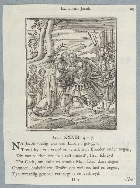 This engraving by Christoffel van Sichem II depicts a scene of conversation, dominated by gestures of hands clasped in discourse. In the upper register of the image, heavenly figures appear within cloud-like forms. Consider the hand gestures: here we witness a visual echo, resonating through time and culture. The motif of clasped hands can be traced from ancient Roman oratory, where rhetoric and persuasion were paramount, to early Christian art, signifying agreement and shared belief. This same gesture reappears during the Renaissance, embodying intellectual exchange and human connection. The recurring depiction of hands united symbolizes a continuous thread of shared knowledge and understanding, persisting and evolving through generations. The emotional weight and cultural significance embedded in the iconography creates a powerful force, connecting the viewer to the timeless themes of knowledge, belief, and human connection.