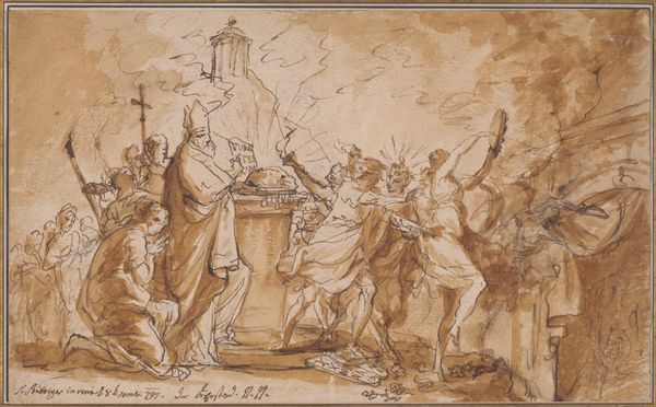 Luca Cambiaso made this drawing, Resurrection, in the mid-16th century, using pen and brown ink with brown wash over graphite on laid paper. The choice of the material influences the overall texture and color of the artwork, which makes it appear monochromatic and subdued. The laid paper provides a slightly rough surface, adding depth to the image. The application of brown wash further enhances the shadows and highlights, creating a sense of volume and drama. Cambiaso's technique involves a combination of controlled lines and looser washes, giving the drawing a dynamic and energetic quality. This approach aligns with the broader artistic traditions of the Renaissance, where skilled draftsmanship was highly valued. The process emphasizes the amount of handwork involved in its production. Ultimately, understanding the materials, making, and historical context enriches our experience of the artwork, bridging the gap between fine art and the labor involved in its creation.