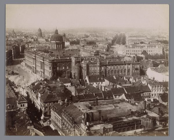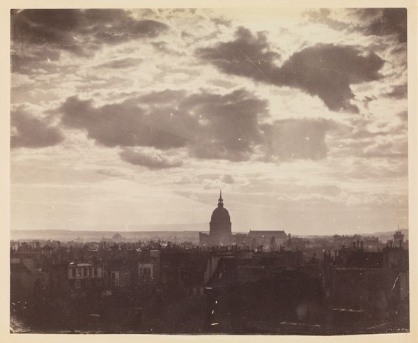 Editor: We’re looking at James Anderson’s "View of Rome," circa 1855. It appears to be a photograph. The buildings are so dense, almost claustrophobic. It makes me wonder about the lives of the people living there. What's your perspective on this work? Curator: It's crucial to acknowledge how a 'view' like this, especially in the 19th century, is never neutral. Anderson, a Scottish photographer working in Italy, wasn't simply capturing a scene. He was framing Rome for a predominantly Western European audience, contributing to a specific narrative of the city as an ancient, monumental, and essentially 'conquered' space. Who had the privilege of these views, and whose stories were obscured by them? How did this representation perpetuate existing power dynamics between the colonizer and the colonized, or the North and South? Editor: So, it's more than just a pretty picture of domes and rooftops? Curator: Exactly. Think about the sheer density you mentioned. That wasn’t just an aesthetic quality. Urban density often correlates with economic disparities, with some inhabitants living in greater luxury than others, suggesting issues around class and resource distribution. How does the image aestheticize or perhaps even sanitize these inequalities? And given that Rome was, and remains, a deeply Catholic city, how does Anderson's framing either reinforce or challenge the authority of the Church? What about gender; who gets to build, who gets their voice heard? Editor: It gives me a lot to consider about whose stories are actually being told—or not being told—in these historical images. Curator: Precisely. Art is never created in a vacuum. It’s a product of its time, reflecting and shaping the social, political, and economic realities that define it. Editor: I never thought a simple view could have so many layers! Thank you.