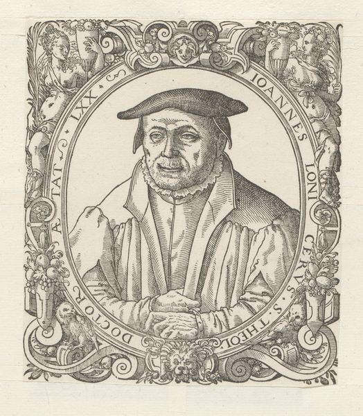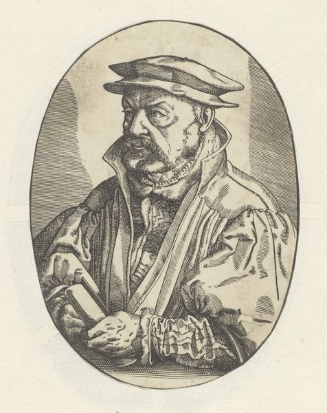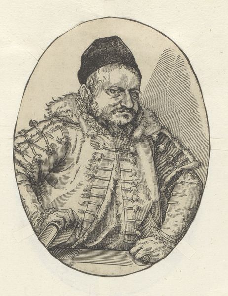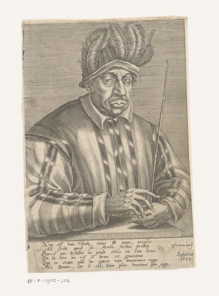 Editor: This is "Portret van Friedrich von Gottesheim," a Northern Renaissance engraving made sometime between 1549 and 1584 by an anonymous artist. It strikes me as a very formal, almost imposing portrait. What’s your read on this engraving? Curator: I see a work deeply embedded in the politics of representation and the assertion of status. Notice how the subject's clothing signifies wealth and authority within the context of 16th-century Europe. This isn't merely a likeness, it’s a constructed identity, carefully crafted for public consumption. Editor: So, you're saying this image served a very specific social function? Curator: Absolutely. Think about who had access to creating and distributing prints like these during the Renaissance. Consider the role of patronage, class, and power in shaping artistic production. The act of creating and disseminating this image was a privilege. What narratives are subtly enforced through this access? Editor: That makes me think about the limitations inherent in portraits from this period. The average person wouldn’t have had their image recorded. Curator: Exactly. Whose stories are told, and whose are deliberately left out? These are critical questions to consider when engaging with art from the past. The engraving style also reveals something, don’t you think? Its stark lines give the impression of something fixed and rigid. Does this rigidity invite critique of the power structures it may have supported? Editor: It’s fascinating how one image can reveal so much about society at the time. Curator: Indeed. Examining these power dynamics through the lens of contemporary theory allows us to understand how historical works continue to shape and reflect our present. Editor: I see how important it is to unpack these hidden social and historical layers. Curator: Precisely, art is never created in a vacuum, and being alive to its complexities helps us all better understand our place in the world.
