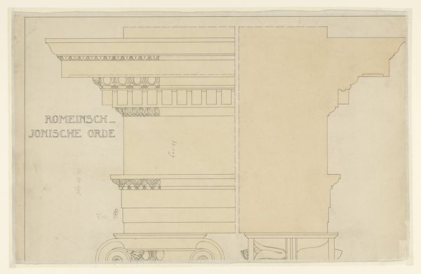 Editor: We're looking at "Moldings and Fretwork for China Case, from Chippendale Drawings, Vol. II," created in 1753 by Thomas Chippendale. It’s a drawing, a print really, made with coloured pencils, currently held at the Met. The architectural quality of the geometric shapes definitely catches the eye. What’s your take on it? Curator: The line work in this design is especially intriguing. Note the balance achieved through the geometric progression of shapes—squares giving way to rectangles, each holding meticulously rendered linear patterns. Consider the contrasting textures achieved purely through the manipulation of line and negative space. How does the interplay between these forms affect your perception? Editor: I see a calculated harmony. The geometric shapes don't feel rigid. But how much do the shapes determine the visual impact? Could they have been composed differently, maybe with circular elements? Curator: Introducing circularity would fundamentally alter the design's structure and expressive capability. The linear quality is not merely decorative, it establishes a sense of ordered elegance crucial to the Neoclassical aesthetic. Observe how each vertical division maintains the visual integrity of the larger whole. Editor: So, the form is paramount here, setting a structure where different artistic forms could come together in their own right? Curator: Precisely. We are invited to examine the formal relationships first and foremost. The balance of shapes, textures, and direction—these are what convey the artistic intention. Editor: It makes me see it more as a unified statement, rather than just elements put together. Thanks. Curator: And I'm reminded that structure always reveals the principles of design!