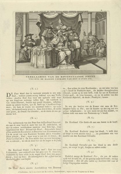 This anonymous print, made in 1731, depicts the Devil on the Papal throne, crafted with etching. The process involves coating a metal plate with wax, drawing through it with a sharp needle, and then bathing the plate in acid. This creates incised lines that hold ink, allowing the image to be transferred onto paper. The fine lines achievable with etching enable intricate details, seen here in the rendering of textures and tones. The linear quality emphasizes the overall satirical and critical tone, highlighting the contrast between the image of the Devil and the surrounding ecclesiastical figures. Etching, as a method of image production, was well-suited to the dissemination of political commentary during the 18th century. This allowed for relatively quick and inexpensive reproduction of images that could reach a wide audience, influencing public opinion and challenging authority, and blurring the boundaries between art, social critique, and popular culture.