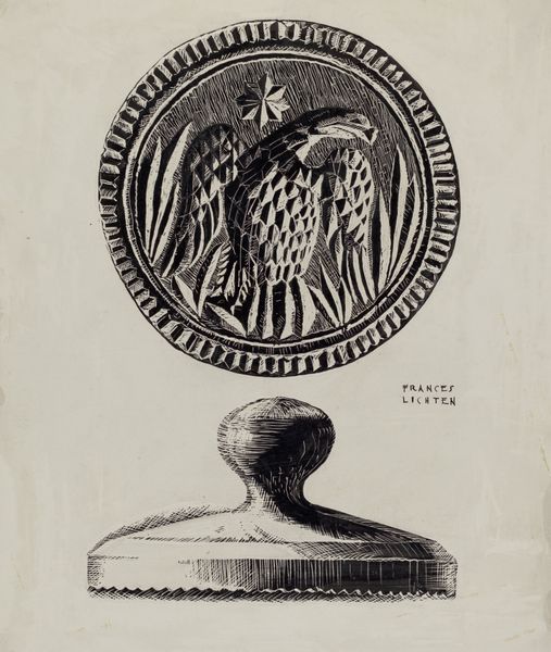 Oleksandr Aksinin made this exlibris of Oleksiy Itutin using ink on paper. The detail in this print is quite something! I’m interested in the way the process reveals itself; it’s so clearly made of many tiny marks, little lines and dots, and they all add up to this odd scene. The texture of the piece is intense, from the scribbled background to the tightly wound springs that radiate out behind the central structure. The overall impression is kind of dreamlike, like looking into someone else's imagination. Especially with that figure floating above the machine. The way the ink is applied gives everything a slightly rough, almost anxious feel. The whole thing reminds me a bit of Alfred Kubin's dark, fantastical illustrations, full of symbolism and personal mythology. But there's also a playfulness here, a sense that Aksinin is inviting us to piece together the puzzle, without ever quite solving it.