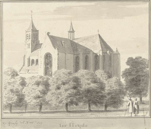 Curator: Here we have Abraham Rademaker's "Gezicht op Kasteel Lockhorst," dating from 1727 to 1733. It's an engraving, currently held at the Rijksmuseum. What's your initial impression? Editor: Austere, definitely. The stark lines and monochromatic palette lend it a certain gravity. It feels quite solid, immutable, like an unshakeable monument. Curator: Rademaker's choice of subject is very telling, especially when you consider the sociopolitical function of castles and large estates during this period. They were powerful symbols of authority, often representing control over both the land and its inhabitants. The surrounding landscape wasn't simply a backdrop but also visually declared privilege, dominance. Editor: Absolutely. And notice how the strong horizontals of the architecture, the way they are repeated in the reflection in the water create a powerful sense of balance, almost stasis. It reinforces the impression of solidity and permanence that I observed earlier. Curator: Indeed. Furthermore, we might consider Rademaker's positionality as an artist creating landscape prints. He wasn't just passively representing the castle; he was actively participating in the production of its image and thus contributing to the overall power dynamic. It’s through circulation as printed matter that allowed for ideas about the estate system to travel from community to community. Editor: Looking at the texture, you get such variation created with subtle manipulation of the lines – from the crisp detailing of the brickwork to the soft suggestion of the water’s surface. The composition is a testament to Rademaker’s control over his medium. Curator: And control is key to our understanding of this piece! The families that owned these buildings, they aimed to assert an unshakable control across every element of their existence. So it’s vital for us to not detach questions of style and texture away from concerns of how art and history co-inform one another. Editor: A very valid point. The building isn't just a building, or just formal technique on display, but is bound up with larger, historically-contingent notions of social hierarchies. Thinking about that tension enhances my experience of it significantly. Curator: Likewise! Considering both the intrinsic form of the artwork and its broader context gives rise to a layered comprehension of its role in our shared past.