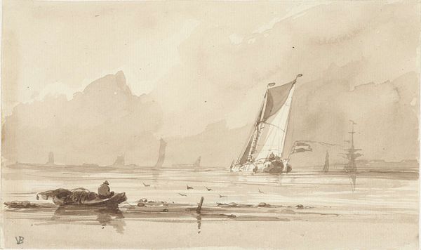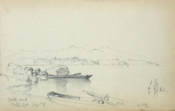 Curator: Ah, this evocative landscape, Lake Molly Chunk-a-muuk with Boats, is by Benjamin Champney. It’s undated, but we know Champney was active throughout the 19th century. Editor: It’s quiet, isn't it? The kind of scene that makes you want to breathe deeply, even just looking at it. Sort of serene, but melancholic at the same time. Curator: Champney was deeply involved with the White Mountain School, and he captured the changing face of the American landscape, especially its relationship to industrialization. Editor: You can almost feel the tension between the romanticized vision of nature and the burgeoning industrial elements. The boats, for instance, point to that shift. And who gets to enjoy that leisure? Curator: Absolutely. Champney's work invites us to consider how access to nature and its representation are tied to larger social and economic currents. There's a powerful message about the changing experience of the everyday. Editor: It makes you wonder about the stories behind each boat, each ripple on the water. Makes you feel small, in a good way. Curator: Indeed. It's a subtle yet powerful piece, one that lingers in the mind long after you've left it.