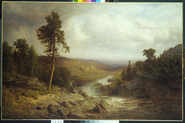 William Henry Huddle painted 'Marble Falls' in oil, capturing a scene of the Texas landscape, likely in the late 19th century. It presents a seemingly untouched view of nature. However, landscape paintings like this are rarely neutral. They often reflect ideas about land ownership, use, and progress. Consider how the painting might suggest the potential of the Texas landscape for economic exploitation, or perhaps an emerging awareness of the need for conservation. Huddle lived through a period of rapid change in Texas, including the expansion of railroads and agriculture. To truly understand this work, we might research the history of Marble Falls itself, looking at its economic development and environmental changes. Archival photographs, maps, and local histories could reveal how this landscape was perceived and transformed during Huddle’s lifetime. This enables us to interpret the meaning and social relevance of the work.
