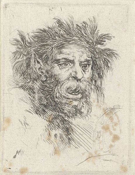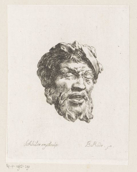 Editor: This is Christian Bernhard Rode's "Mask from the Courtyard of the Zeughaus, Berlin." It's a small print, just a few inches across, depicting a grimacing face. What can you tell me about the historical context of displaying architectural fragments like this? Curator: Rode’s print reflects the 18th-century fascination with ruins and fragments, connecting to the Grand Tour tradition where elites collected antiquities. The Zeughaus, a military storehouse, held these masks, becoming a public spectacle. Editor: So, the display itself transformed the object into something more than just decoration? Curator: Exactly. By showcasing these masks, the Zeughaus curated a particular image of Berlin, linking military might to classical ideals. It’s a calculated display of power and cultural aspiration. Editor: That's fascinating. I never would have considered the politics of displaying architectural fragments. Curator: The public role of art is so interesting.
