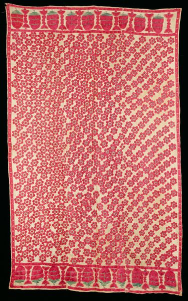 Curator: Here we have Emily Kame Kngwarreye's "Fertile Desert," painted in 1992 using acrylic on canvas. Editor: The immediate impression is of radiant heat. A sort of pulsating field of red and yellow dots—an energetic surface. Curator: Indeed. Kngwarreye, despite only taking up painting in her late seventies, became a major figure in contemporary Indigenous Australian art. The piece reflects her deep connection to the land and its cycles, moving away from rigid patterning. Editor: The texture achieved with the dotting technique is really quite something. See how it varies in density, creating areas of greater and lesser intensity? It almost vibrates, suggesting the desert's hidden life force. Curator: Her work arose from traditions like ceremonial body painting and batik dying but gained renown as Aboriginal art gained recognition internationally, with a shift toward the more intuitive approach she is famous for. Notice that her work often reflects seasonal changes after the rains. Editor: Fascinating to consider this intricate network of marks, this topography of dots as a metaphorical landscape—a micro- and macrocosm contained on canvas. The slight imperfections are key; they give it such an organic, non-formulaic presence. Curator: Yes, her legacy really challenges established notions of Indigenous art, propelling it into the contemporary art market and pushing its conceptual boundaries. Kngwarreye helped demonstrate that Aboriginal art was about more than strict traditionalism. Editor: So, in a way, "Fertile Desert" is also a map. It directs us to the dynamic relationship of land and life, expertly rendered in a pointillist approach using bold color and variable patterns. Curator: Yes, it reframes Aboriginal artistic practice in global dialogues. A beautiful example of the way the socio-political context of the time propelled the recognition of unique traditions into international discourses. Editor: It certainly lingers in the mind. This is art which reminds us of what we have yet to notice in the world.