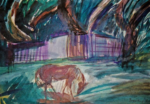 Maria Bozoky made this watercolour painting, Street Scene in Prague, at an unknown date. Look at how she conjures a world with such breezy marks! Everything feels provisional, like a sketch, but somehow complete. Bozoky’s painting is all about the surface: the quick, gestural strokes of the brush, the way the colours bleed and mingle. There’s a real looseness to the whole thing. I love how the trees are just scribbles of colour and the buildings lean and tilt with a kind of charming awkwardness. The palette is muted, mostly blues, greens, and browns, with these jolts of red in the buildings. It’s all so immediate and unpretentious. Notice the way she renders the figure of the woman walking away from us. With just a few strokes, she captures the essence of a person in motion. Bozoky reminds me a little of Raoul Dufy, with her light touch and her love of capturing a scene in a few quick strokes. Her work reminds us that art doesn’t always have to be about perfection. Sometimes, it’s the imperfections that make it so beautiful.