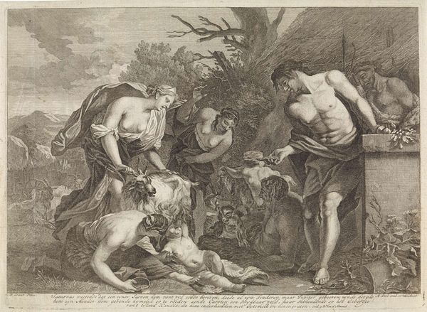 Curator: So, we’re looking at "Jupiter abducting a Woman while Juno watches," an engraving from the late 17th century, attributed to an anonymous artist, here at the Rijksmuseum. Editor: It's quite striking. The detail achieved in the engraving is incredible. There's so much implied texture and form achieved through line work. What particularly catches your eye in this print? Curator: As a materialist, my focus shifts towards the means of production, particularly the social context within which this engraving would have been made. Engravings, unlike unique paintings, allowed for a reproduction and wider circulation of imagery. Consider the implications of democratizing access to mythological scenes, especially those depicting the power dynamics inherent in stories like this abduction. Who was consuming these images, and how did the process of printmaking itself affect their reception? Editor: That’s a really interesting way to frame it. I hadn’t considered the role of reproduction in shaping its meaning. How does the specific technique of engraving play into your interpretation? Curator: The engraver's skill, though anonymous in this case, becomes a crucial element. Notice the controlled lines, the precision needed to create these tonal variations. It speaks to the highly specialized labor involved. Furthermore, engravings were often used as reproductive prints after paintings. This begs the question, is this simply a copy, or does the act of translation through a different material – metal, ink, and paper – introduce a new layer of interpretation and meaning? Consider how the mass production alters its perceived cultural value and challenges the art status from "high art" to... something else? Editor: I see what you mean. Thinking about the materials and production really opens up questions about accessibility, labor, and the definition of art itself during that time. It's a completely different way to think about this image. Curator: Precisely. Material concerns help to challenge the canon narrative of pure aesthetic appreciation of art by exploring socio-historical backgrounds. Editor: That’s a great way to put it. Thanks for sharing that perspective.