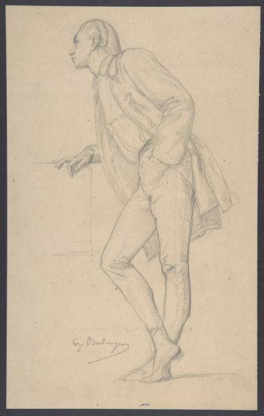 Editor: This is Sir John Everett Millais' sketch, "Study for ‘The Blind Girl’." It's a pencil drawing, quite delicate. I wonder about Millais' process. What do you see in this piece in terms of its making? Curator: As a study, its materiality reveals a crucial stage in Millais' production. Note the repetitive lines; they show him grappling with form, particularly the fall of the fabric. Where did he source his materials? What was the paper-making process at the time? These elements directly inform the final painting's reception. Editor: That's a really interesting point; I hadn't considered the paper itself. Curator: Understanding the means of production contextualizes the work within broader economic and social structures. I wonder, how does the sketch's accessibility compare to the final painting's exclusivity? Editor: Thanks, that makes me appreciate sketches more as revealing the labor behind a finished piece.