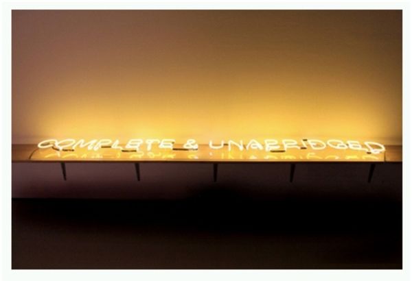 Curator: Immediately, I'm struck by how spare it is, a stark statement in light. Editor: We're looking at a work by Ron Cooper, "Untitled," created in 2010. What we see is a neon sign spelling out the word "white." It’s a study in contrasts, wouldn't you say? Curator: Absolutely. The cool detachment of neon against that background… I see both promise and institutional critique in its simplicity. White: purity, cleanliness, but also, the blank canvas, the silencing. It evokes minimalist aesthetics but almost dares you to see beyond it. Editor: Neon as a medium is intriguing. Think of its origins in commercial signage, advertising. Cooper takes this inherently mass-produced material, traditionally functional, and places it firmly within the art world. How do the associations we have with neon, perhaps from the street, from advertising, shape our understanding of it? Curator: Neon has a kind of ephemeral quality too, it glows so brilliantly and it attracts the viewer like a moth to a flame. Think of its prevalence in depictions of cities, even in film; but also, what does it mean for the viewer? Is white a projection, an unattainable ideal? Editor: Consider too the process of fabrication, bending glass tubing, filling it with gas. The manual skill, labor required contrasts sharply with the clean, almost machine-made appearance of the finished object. It's almost a mass produced commodity transformed into an singular piece. That transition is the work itself. Curator: That play with form really pushes this past Pop Art’s obsession with mass culture. It gets under the skin of our collective ideas. It feels very postmodern in that questioning of value and origin. Editor: Looking closer, I like seeing the wiring extending downward. It highlights the support structure, acknowledging both the material reality and the somewhat manufactured sense of weightlessness the lit form projects into space. Curator: And yet the single word glows and carries layers of meaning... Ron Cooper prompts us to consider those many faces of white—blankness, absence, possibility, challenge, hope. Editor: For me, this piece exposes the means, reveals labor while commenting on both its status as an object and the complex interplay of material, construction, and artistic gesture.