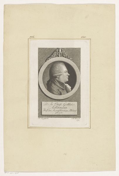 Georg Christoph Schmidt made this portrait of Johann Georg Friedrich Franz in 1784, employing meticulous engraving. Framing the subject, we observe a laurel wreath, a motif descending from classical antiquity where it symbolized triumph and eternal glory. It’s a visual echo reverberating through centuries, initially adorning victors and emperors, later adopted in academic and artistic circles to denote excellence and honor. Consider how, in Renaissance paintings, a similar wreath might crown a saint or a poet, each context subtly shifting its significance, imbuing it with new layers of meaning. This emblem's recurring presence suggests a deep-seated human desire to immortalize achievement. It speaks to our collective memory of greatness, a psychological imprint that continues to shape our visual language. The laurel wreath, therefore, is not merely decorative; it's a testament to the enduring power of symbols, their capacity to transcend time, and their ability to resonate across cultures.