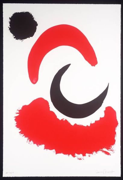 Editor: Right now we’re looking at Alexander Liberman’s "Omicron V" from 1961, an acrylic on canvas. I'm really struck by how simple it is: just a few basic shapes and colors, but it feels really bold. It almost feels like it is mocking the viewers through how minimalist the composition is! What social forces do you think were at play that would drive Liberman to paint this? Curator: It’s interesting you use the word ‘mocking’. Given its creation during the Cold War, what if it weren't mocking but, rather, questioning established societal norms, particularly regarding artistic expression? Abstract works like these prompted questions about their public function: did art need to explicitly represent reality to be relevant, or could abstraction reflect deeper truths about the human condition and geopolitical tensions? Editor: So, you're saying its seeming simplicity is almost a form of rebellion? Curator: Exactly! Furthermore, consider the rising influence of American Abstract Expressionism and Pop Art on a global stage. Museums and galleries actively promoted these styles, shaping public perception. Was Liberman commenting on this institutional endorsement of particular art movements and, therefore, indirectly questioning this dynamic? Does that bold redness push back against established art and force you to acknowledge something that can not be easily digested or neatly packaged? Editor: It does make me wonder about the choices museums make in showcasing art and how those choices can impact what we see and how we interpret it. Curator: Right. What political undertones might exist in these abstract, seemingly harmless, forms, which were circulating within a specific museum network? Editor: That's fascinating. I never thought about it that way. It's less about what the art is ‘of,’ and more about what it ‘does’ in the broader cultural landscape. I think I learned a ton, thank you. Curator: Likewise! Considering art's function within historical currents has revealed just how ‘charged’ an abstract painting such as Liberman's can be.