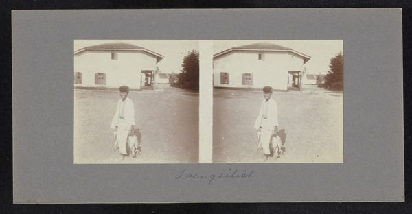 Curator: Looking at this photographic print, what resonates with you immediately? Editor: A deep stillness. The monochromatic palette and composition evoke a palpable silence despite being, on the surface, a representation of street life. Curator: Indeed. This piece is titled "Children on the Street," crafted sometime between 1900 and 1922 by Robert Julius Boers. The image offers us a glimpse into daily life at the beginning of the 20th century. Notice the stereoscopic style format used here. The dual presentation subtly impacts our reading of the photographic reality being captured. Editor: I agree. The doubled images underscore the presence and potential future these children might represent, highlighting issues of representation, class, and colonial contexts embedded within such images. Boers was active during a pivotal period. Curator: Precisely. Genre paintings or street photography like this, rooted in realism, frequently use symbolism. I observe how the older child partially shields the younger one, perhaps acting as a guardian figure within this public space. What deeper interpretations could we glean from their positioning? Editor: It speaks to layered dependencies – gender, age, power dynamics that structured society at the time. This wasn’t just a neutral depiction of "children," but a pointed display of societal structure. Even the buildings, repeating in the distance, hint at systematic elements at play. Curator: Consider too, the use of light. Boers captures a distinct interplay of light and shadow, casting stark contrasts on their figures. This emphasizes their physical presence in this public sphere. The repeated images further emphasizes how embedded in this moment in time these subjects were. It adds emotional resonance that echoes across decades. Editor: Exactly. And the historical context is crucial here. It reveals the realities of colonialism, societal expectations, and perhaps also serves as a form of documentary that challenged accepted portrayals of people during that era. I'm interested to know if Boers considered himself an activist or simply an observer. Curator: Intriguing considerations. What strikes me most now is how the act of preservation - the preservation of this captured moment - shapes how we perceive children, family and street-photography through cultural memory and continuity. It reminds us to recognize how potent photographic representation really is. Editor: A great piece indeed. Thinking about today's viewers, this photograph opens paths into questions regarding intersectional narratives. These photographs document more than just individuals. Curator: It serves as an evocative meditation on culture, youth, memory, and societal responsibility.