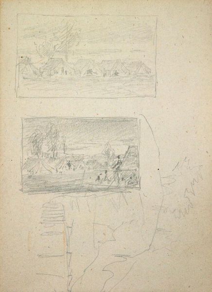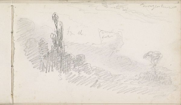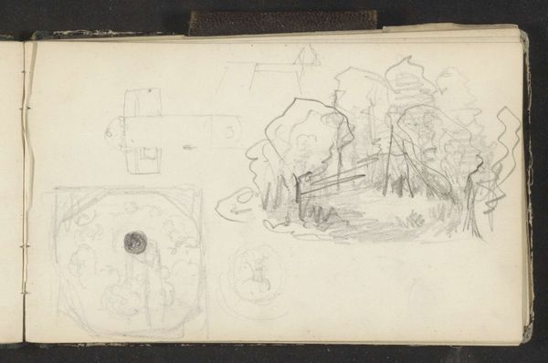 Editor: So, this is "Studieblad met figuren, armen, handen en bomen," a drawing by Charles Rochussen, dating from around 1840 to 1860. It's done in pencil on paper and is currently held at the Rijksmuseum. What strikes me immediately is the intimate glimpse into the artist’s working process. How would you approach understanding this piece? Curator: As a materialist, my gaze falls first upon the tools and the surface itself. We see pencil on paper, the most immediate means of translating thought into image. The paper is relatively unadorned, cheap even – the kind of surface meant for quick studies, not a final 'masterpiece'. It’s raw, it’s utilitarian. Editor: Utilitarian, yes, I see that. What does this tell us about the social context of art-making at the time? Curator: Precisely. Rochussen is providing us with a window into the often unseen labor of the artist. It is through these sketches, these experiments, that 'high art' is ultimately produced. Furthermore, the sketch encompasses varied elements – figures, studies of arms, and rudimentary renderings of nature. He explores them independently of each other, giving it the impression of fragmented labor and focus. Editor: Fragmented, in what sense? Curator: Each section appears separated, giving us an implicit social critique of mass production: multiple iterations with different components until perfection is attained. We are, after all, at the beginning of full blown industrial revolution. Are those depictions of hands meant to symbolize industrial working class? Is the inclusion of landscape meant to draw comparisons? Editor: So you see the means of production even in what might seem like a simple preparatory sketch. Curator: Absolutely. The accessibility and unpretentiousness of pencil on paper reveal a democratization of art. It suggests an art practice deeply entwined with observation, experimentation, and a consciousness of its own making. Editor: That makes me appreciate the raw nature of this sketch so much more, knowing that it reveals the usually obscured aspects of art creation!