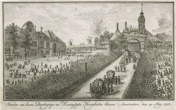 This print, made by Simon Fokke in 1777, commemorates the entrance of the Prince and Princess of Orange into Leeuwarden. It’s a scene brought to life through the technique of engraving, where the artist uses a tool called a burin to incise lines into a metal plate. The material qualities of the metal are important here, as the depth and density of the lines determine the tones in the print. Think about how this technique differs from drawing on paper; there’s a precision and permanence to engraving, reflecting the importance of this royal event. Engraving was a reproductive medium, meaning it was used to disseminate images widely. It connected to a whole social context of printing, publishing, and distribution. By focusing on the materiality and processes of printmaking, we can appreciate how this image participated in the construction of royal power. It demonstrates how craft and fine art are intertwined with labor, politics, and consumption.