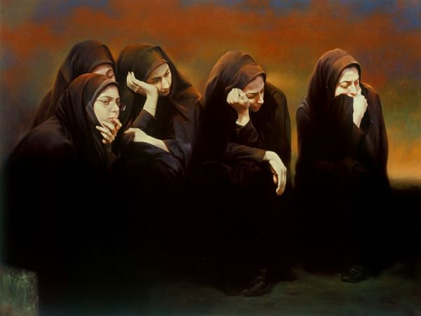 Editor: This is "What If," a photographic work by Boushra Yahya Almutawakel from 2008. It's comprised of six panels, each presenting a man and woman, where the woman's attire progressively covers more of her body. I'm struck by the gradual shift in the representation of the female form. What do you see in this piece? Curator: The piece begs us to consider the means of production and what drives the aesthetic choices here. What materials define a woman's role, and who controls them? It's about the literal cloth, yes, but also the labor and social constructs interwoven into these veils. Think about the social and economic factors determining women’s clothing in different Muslim communities. Is it a matter of personal choice, family tradition, or state regulation? Editor: So you're saying the artwork is prompting us to analyze the production of identity, specifically female Muslim identity? Curator: Exactly. The black and white photography further reduces the information available, emphasizing the binary of covered/uncovered. Where is the labor going? Where does the consumerism that dictates such practices come from? Editor: The way you break it down like that—it's less about the image itself and more about the socioeconomic and political influences shaping it. It almost feels like each progressive veiling adds more layer to existing cultural complexities and socioeconomic implications. Curator: Precisely. This goes beyond a simple fashion statement or spiritual conviction; it reveals the commodification and objectification processes occurring, making this artwork an interesting and poignant statement. Editor: I now see it much less as a series of portraits, but rather a stark comment about the power structures impacting dress and representation. Thanks, that really opened my eyes. Curator: And mine too. It's important we don’t assume a universal interpretation, given the diverse production processes globally.
