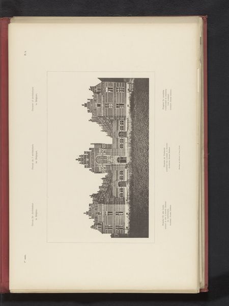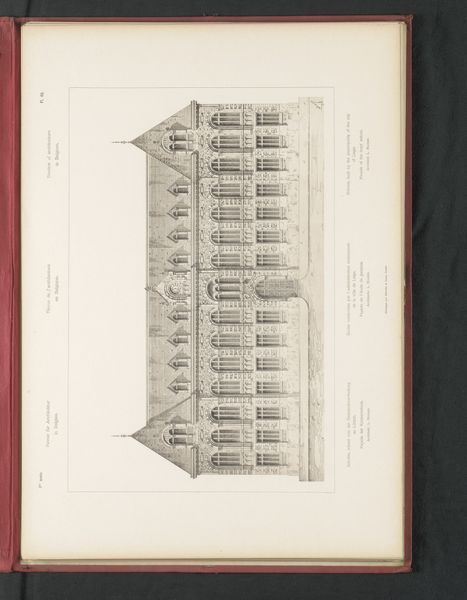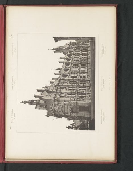 Curator: Here we have a print of a drawing by Louis Boonen. It's a reproduction of a hotel design for the Boulevard de Tirlemont in Leuven, created before 1893. Editor: My first impression is of an elaborate cake. The sheer ornamentation, all those little details rendered in precise lines, make it feel almost edible! Curator: That's a striking take! I'm drawn to it as a record of burgeoning urbanity and class aspirations. The design speaks to the growth of Leuven and perhaps the intended clientele of such an establishment. It provides a fascinating insight into architectural trends. Editor: Exactly! Those trends are rooted in available materials and labour. Pencil and printmaking were relatively accessible ways to disseminate such architectural plans. And the choice of materials surely would dictate a lot in bringing this from page to reality. It makes me consider the relationship between design and materiality. How was this conceived, technically speaking? Curator: Indeed. Consider too, the purpose of reproducing this design. It suggests an intent to promote Boonen's skill and style to a broader audience beyond Leuven, indicating how architectural aesthetics were being publicly curated and displayed, shaping ideas about progress and modernity. Editor: But there’s something very handmade, even charming, in that mechanical reproduction. Look at the subtle variations in line weight suggesting shadows. How do these printed lines translate or obscure the material reality of brick, glass, and timber? What's being highlighted and perhaps, cleverly obscured in the process? Curator: An interesting consideration. The visual emphasis provided by these carefully printed lines potentially glosses over the material considerations while highlighting the aesthetic elements of the facade for a certain type of social visibility. This hotel wouldn't merely be a place to stay, but also a landmark contributing to the boulevard's ambiance. Editor: And those pencil strokes denote an entire chain of skilled labor! The mining for the lead, the wood for the pencil itself… then Boonen, the printer... Each worker a link to that final image. We need to remember it is all embedded within broader conditions of production. Curator: That perspective truly grounds the image, doesn't it? Shifting from aesthetic admiration to thinking about the material means, the socio-political, and human element within artistic processes. Editor: And seeing those structures side-by-side offers different viewpoints.