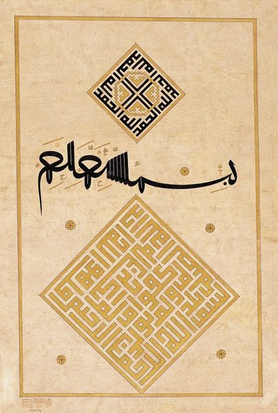 This is a calligraphic album page by Ahmed Karahisari, created during the Ottoman period. It showcases the Thuluth script, a highly ornamental form of Islamic calligraphy often used in architectural decoration and religious texts. Notice how the letters intertwine and overlap, creating a complex visual rhythm. This interweaving isn’t merely decorative; it embodies a deeper connection to the divine, a visual echo of the interconnectedness of all things in the cosmos. Such calligraphic entanglements remind me of the endless knot motif found in Buddhist art, a symbol of infinite wisdom and the cyclical nature of existence. The endless knot, like the calligraphic forms here, has roots stretching far back, appearing in various cultures. Consider the emotional resonance of these interwoven letters – they create a sense of unity and continuity, reflecting humanity’s timeless quest for meaning and connection. These symbols persist, echoing through time, as a testament to the enduring power of human expression.