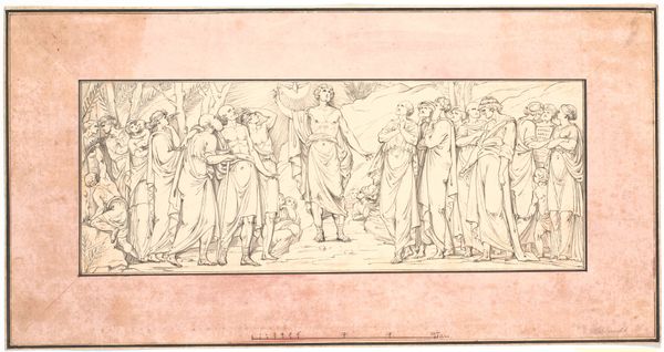 Edme Bouchardon created this drawing titled 'Bearing of the Cross.' This work provides insight into the religious and social values of the 18th century. During this period, religious art was often commissioned by the church or wealthy patrons to reinforce moral and spiritual beliefs. Bouchardon situates us in the deeply unequal power dynamics of this time by depicting the emotional and physical suffering of Christ as he carries the cross, contrasted with the emotional distress of his followers and the violent actions of the Roman guards. The expressions of grief, fear, and helplessness on the faces of the crowd evoke the experience of witnessing injustice, asking us to consider our own responses to suffering and oppression. The figures are draped in classical robes, reflecting the influence of ancient art and underscoring the timeless nature of human suffering. 'Bearing of the Cross' invites us to reflect on the historical contexts of religious art and the ways in which such images can both perpetuate and challenge social norms.