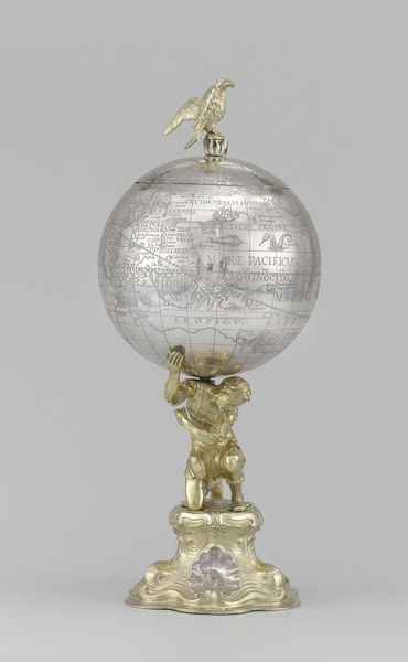 Editor: Here we have a silver teapot by Engelbart Joosten, made in 1776. It's very ornate! I immediately notice the spherical form and how the decorative flourishes seem to almost burst from its surface. What stands out to you from a formal perspective? Curator: The primary feature that commands my attention is indeed the interplay of form and ornamentation. The object's pure, geometric spherical body, a Platonic ideal if you will, is in stark contrast with the florid Rococo detailing that adorns it. Editor: Rococo...so lots of decoration, curves, and asymmetry? Curator: Precisely. Observe how the applied silverwork—the leaves, tendrils, and perhaps even the suggestion of insects—disrupt the otherwise pristine surface. Consider, also, the dramatic curvature of the handle and spout, which function as integral parts, yet visually echo the base's undulating lines. Editor: It’s as if the silversmith was playing with the tension between order and chaos. What effect does the material have? Curator: Silver, chosen for its reflective properties, accentuates the interplay of light and shadow across the piece's surface. The chasing and repoussé techniques contribute to the sculpture's tactile quality. Do you find the juxtaposition of smooth and textured surfaces appealing? Editor: Absolutely, it elevates it beyond a functional object into something purely aesthetic. This close observation has made me see the piece with new eyes. Curator: Indeed. Analyzing such visual strategies allows us a deeper engagement with the artistry of its design.