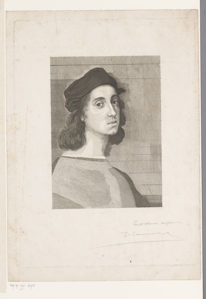 This engraving of Raphael was made by Ernst Ludwig Riepenhausen, a German artist, in the late 18th or early 19th century. Riepenhausen was part of a broader European phenomenon of artistic revival, in which earlier periods and styles were revisited. Here, he depicts Raphael, one of the great masters of the Italian High Renaissance, whose work was deeply admired by the Neoclassical artists of Riepenhausen's time. The image itself uses a visual language that references the classical past. With its clean lines and idealized features, it presents Raphael as a figure of timeless genius. We can see this in the serene expression, the carefully draped clothing, and the overall sense of harmony and balance. Art historians would look at the engraving techniques employed by Riepenhausen and compare them with those used by his contemporaries. By looking at his other works, his relationship to institutions, and the social and political context of his time, we can begin to understand the meaning of this image as part of a broader cultural project.